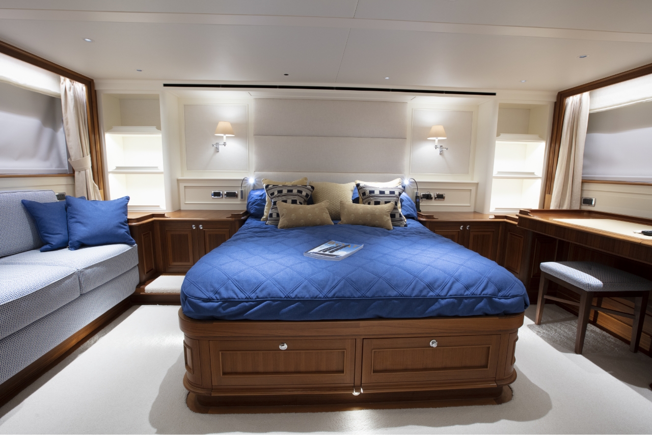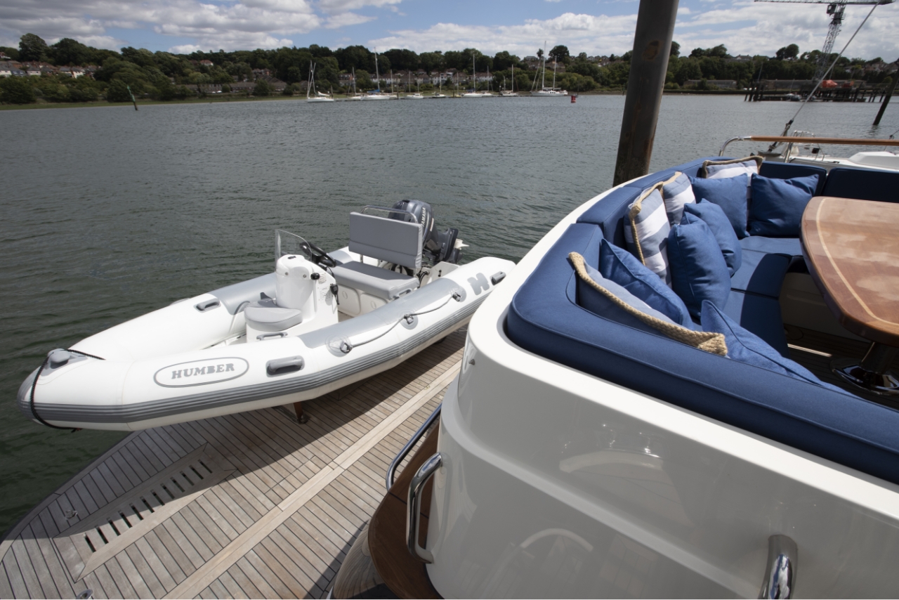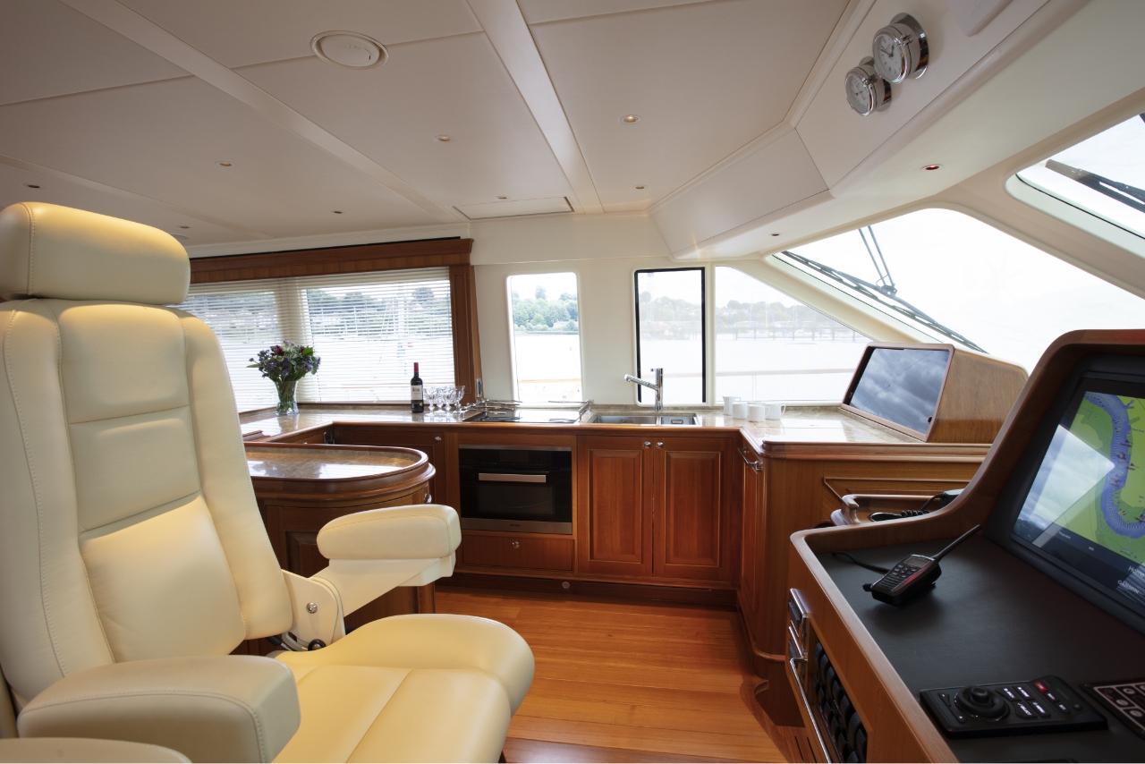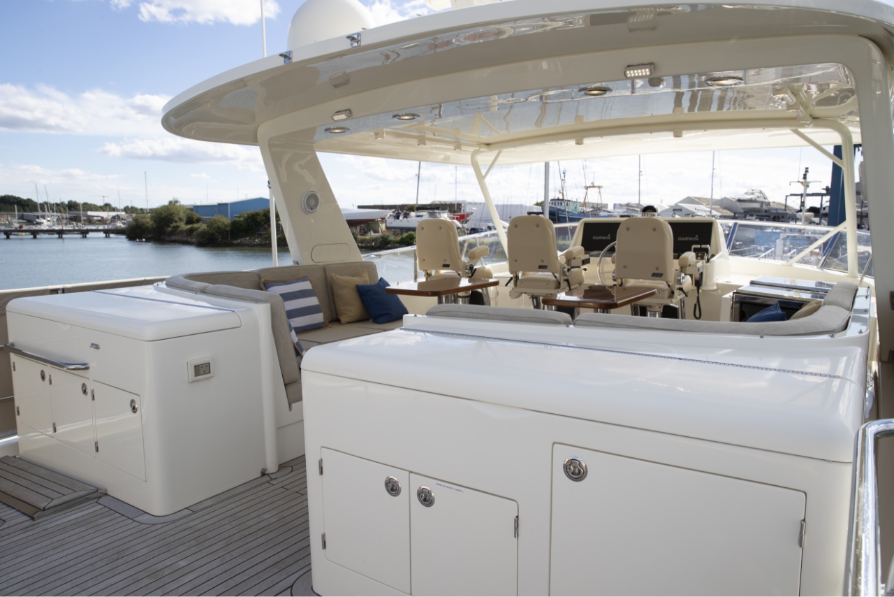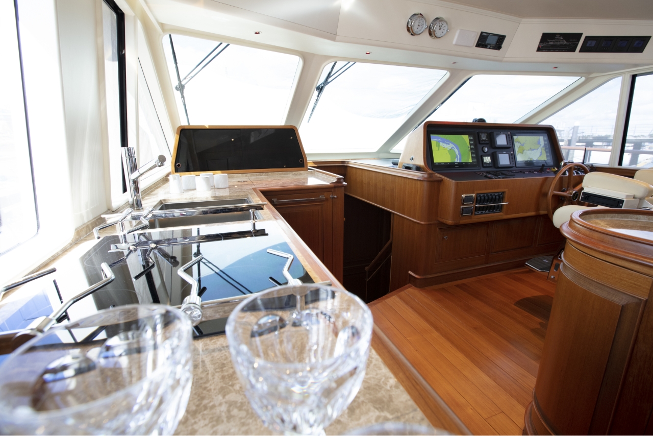 Ocean 76 yachts have comfortable seating and an ergonomic helm design that gives you plenty of room to move about, sip drinks, and gaze out over the water. An extended flybridge with a hydraulic tender lift offers quick and easy storage for a dinghy, so you and your guests can go ashore whenever you need to, then return to the yacht and continue the cruise.